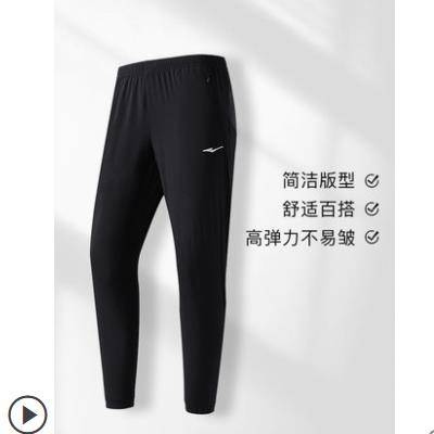 鸿星尔克运动裤男薄款梭织九分裤男士速干休闲黑色裤子男