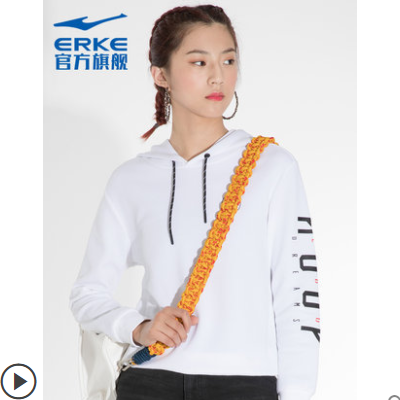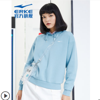 鸿星尔克官方卫衣休闲百搭韩版时尚新款运动女子连帽套头上衣女装