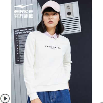 鸿星尔克卫衣秋冬女士气质针织透气休闲服运动套头圆领上衣女装女