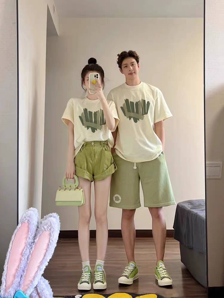 高级感情侣装夏季装潮牌T恤2023新高级感情侣装夏季装潮牌T恤2023新款爆款潮流短袖衣款爆款潮流短袖衣服ins纯棉套装