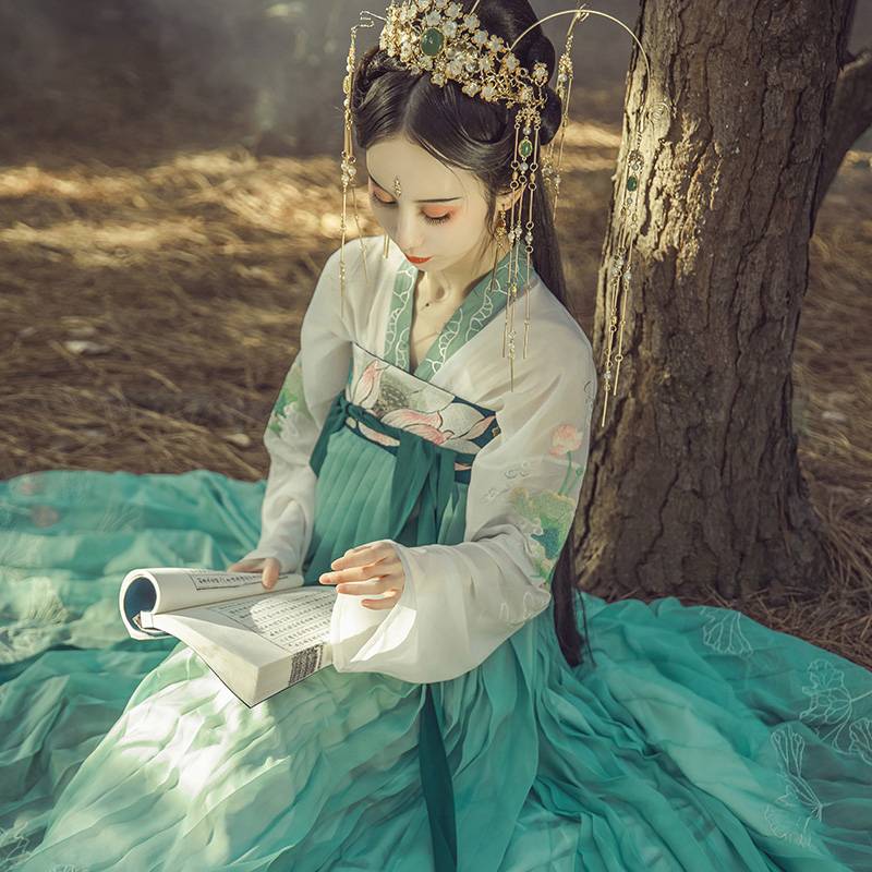 山鬼原创 齐胸襦裙汉服春夏秋款仙女莲花荷叶