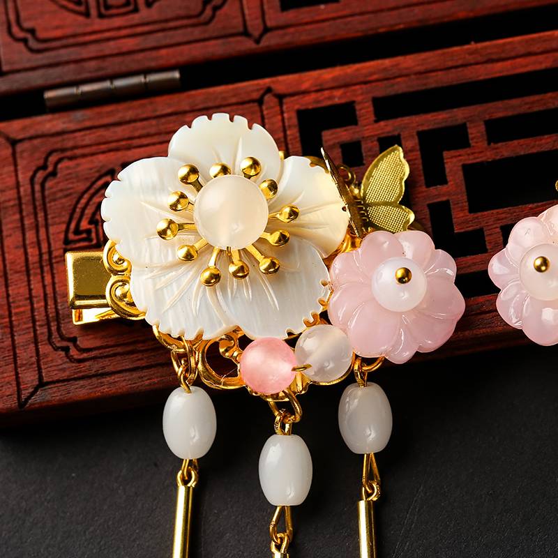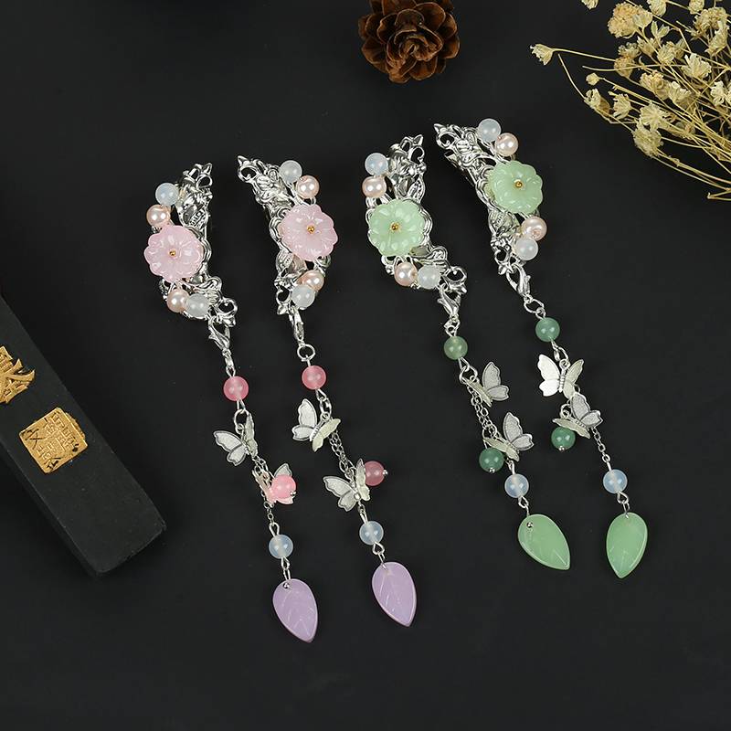 山鬼原创 古装汉服配饰古风发饰发夹蝴蝶贝壳流苏步摇复古发簪