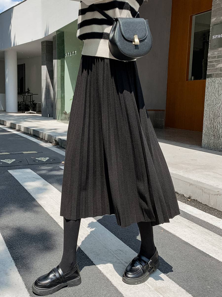 高腰百褶裙女2022新款气质显瘦休闲a字呢子裙秋冬褶皱毛呢半身裙