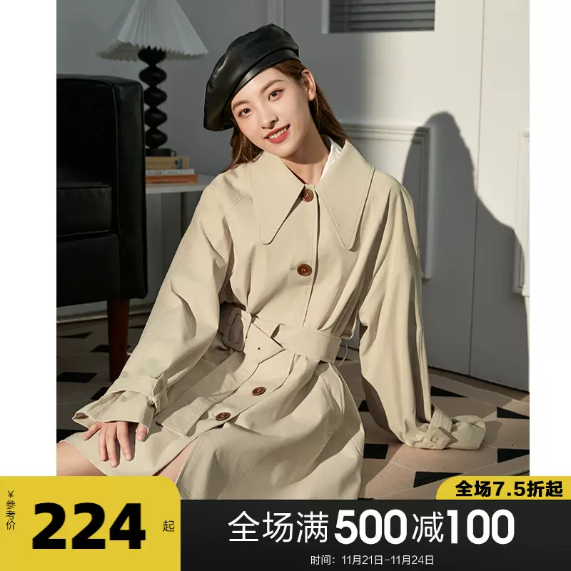 2022秋新款风衣外套女中长款设计感小众女士大衣韩系高级感F