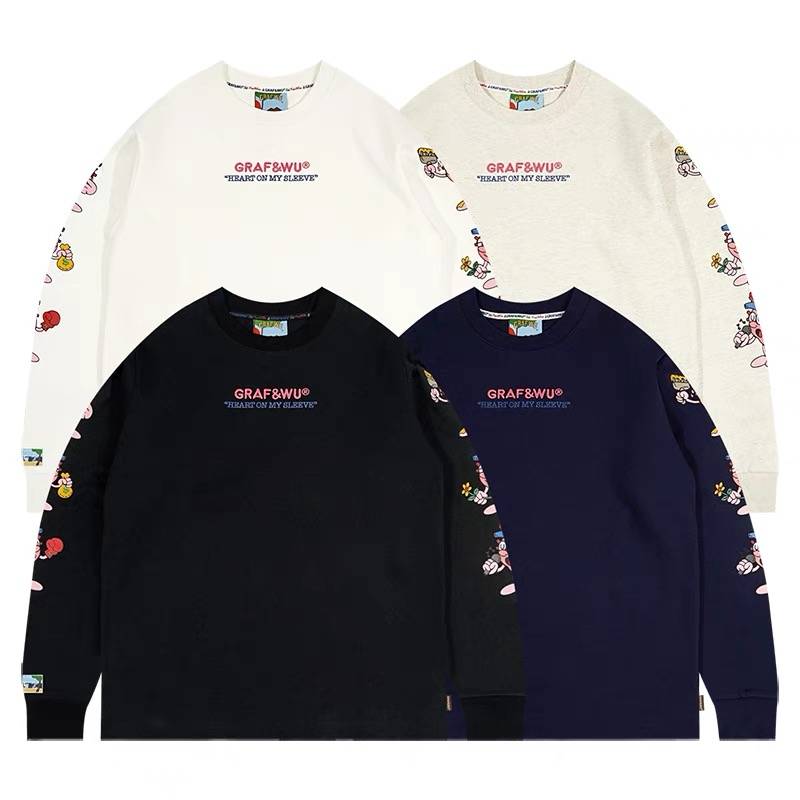GRAF原创品牌HeartOnMySleeve真心可见卡通心脏重磅美式长袖T恤
