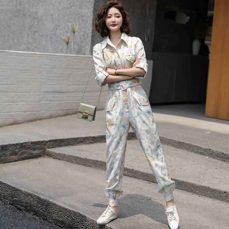 网红连体裤女夏2020年新款薄款印花气质女神范显瘦工装连衣裤套装