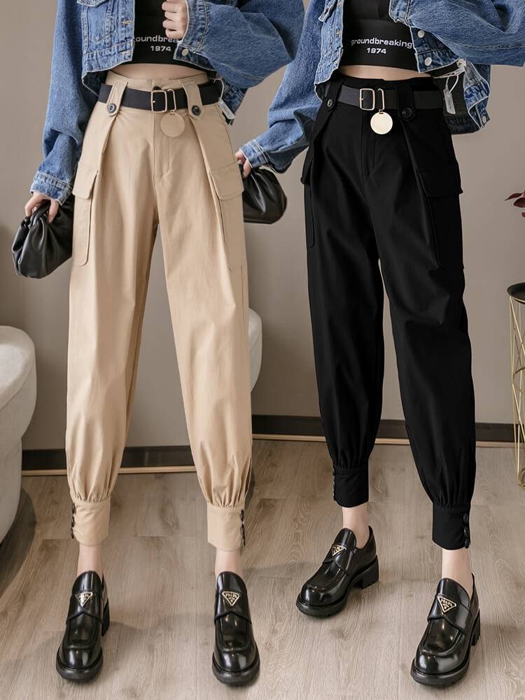 夏季薄款工装裤裤子女2020新款秋冬哈伦束脚休闲裤高腰显瘦萝卜裤