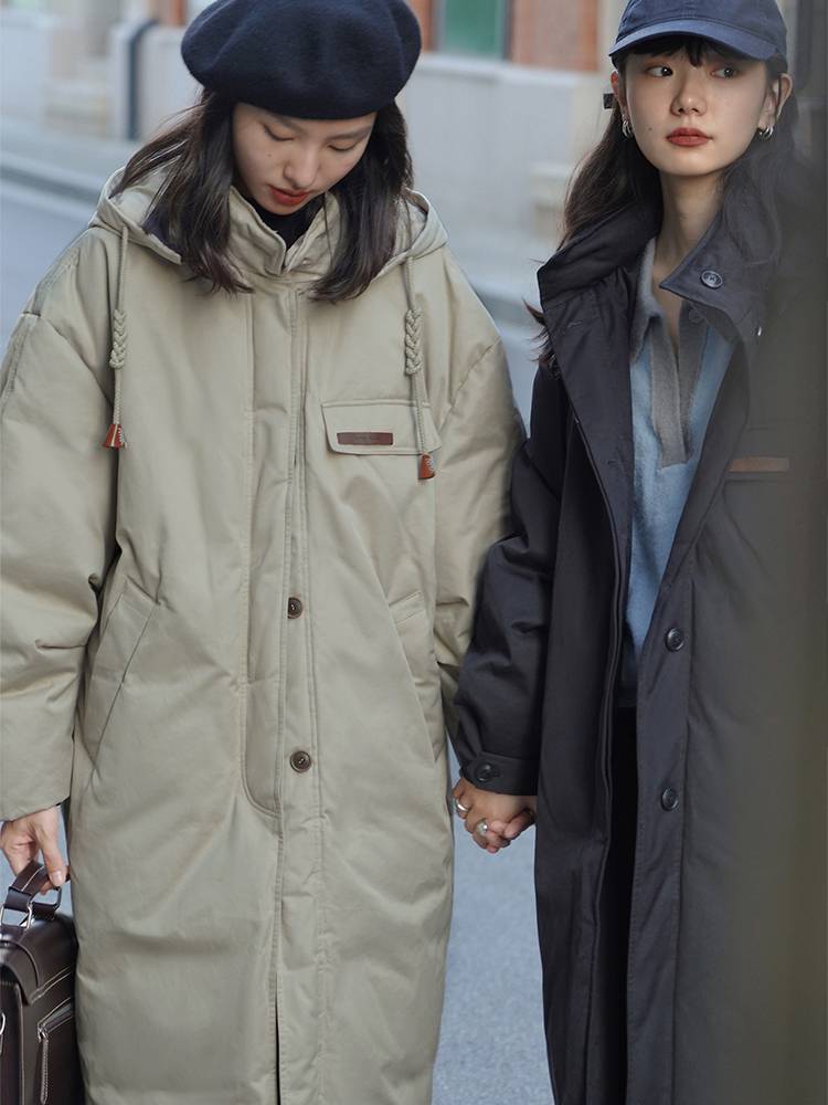 冬季爆款2021年新款90白鸭绒黑色中长款派克羽绒服小个子女