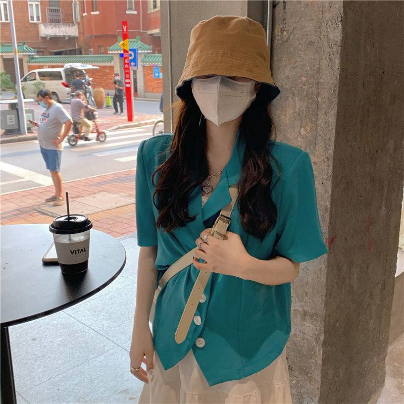 复古可甜可盐两件套女夏季短袖西装外套文艺裙子2021新款时髦套装