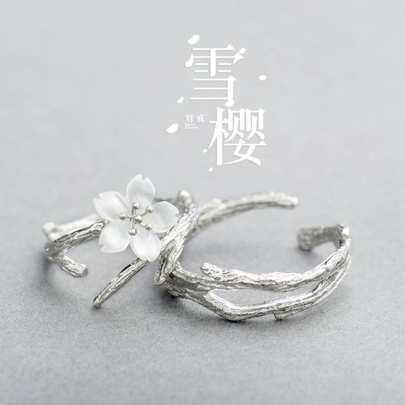 樱花戒指情侣一对纯银日韩简约潮人个性学生百搭对戒原创两件八折