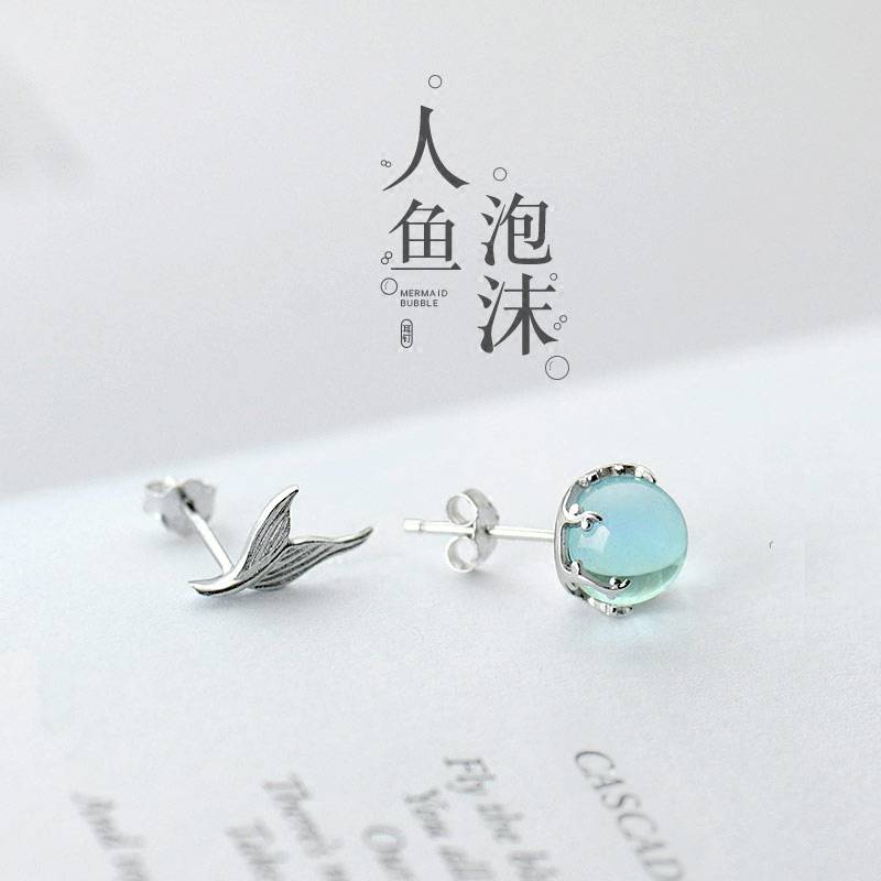 原创人鱼泡沫耳钉纯银女防过敏韩国简约创意学生气质百搭耳饰