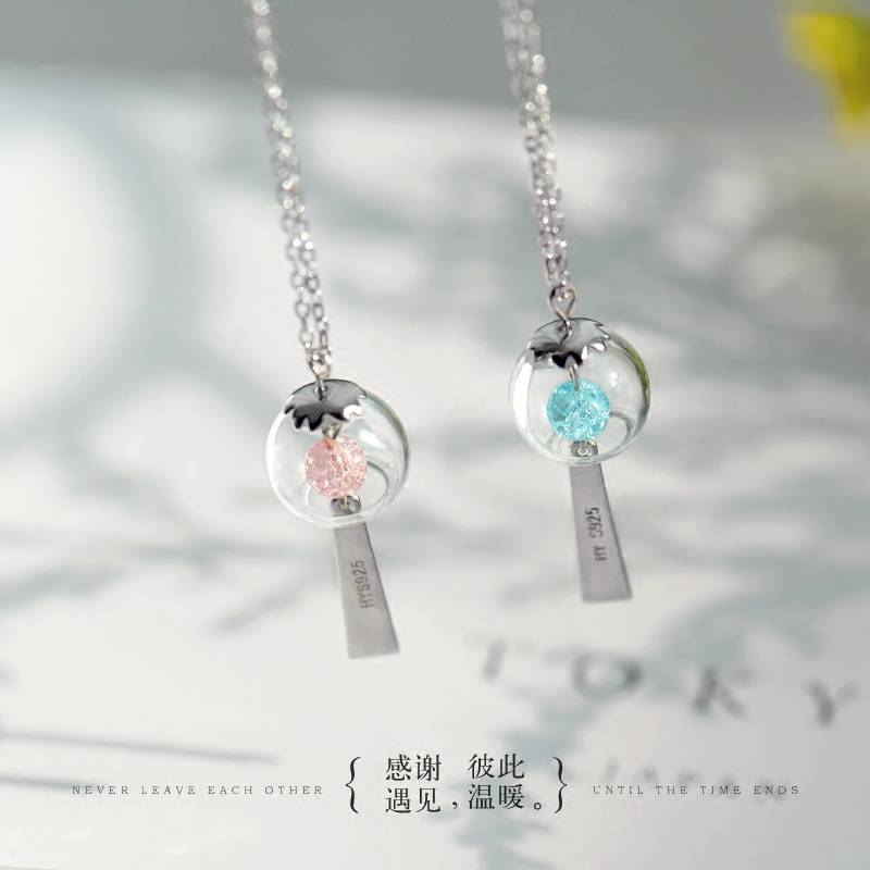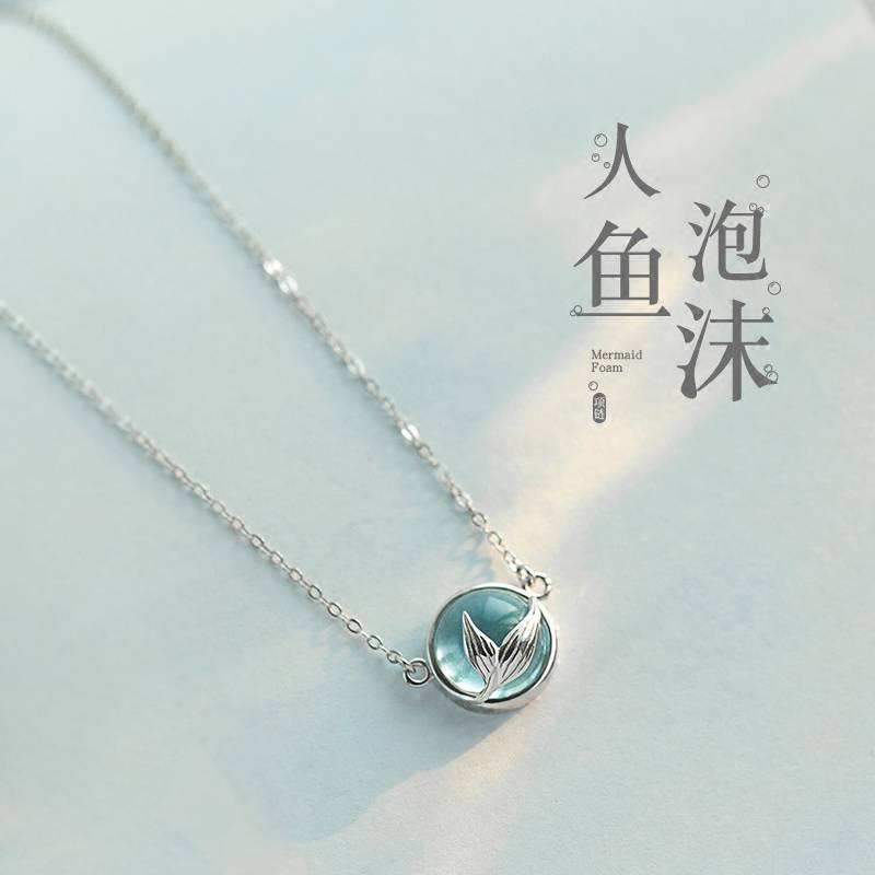 原创人鱼泡沫水晶项链女s925纯银韩版简约学生清新森系锁骨链