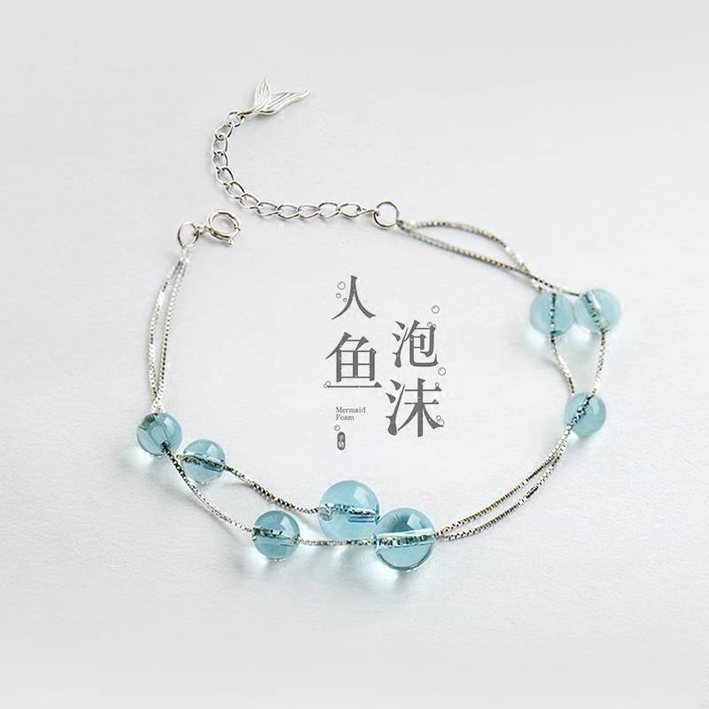原创人鱼泡沫手链女纯银简约冷淡风学生气质森系闺蜜个性饰品