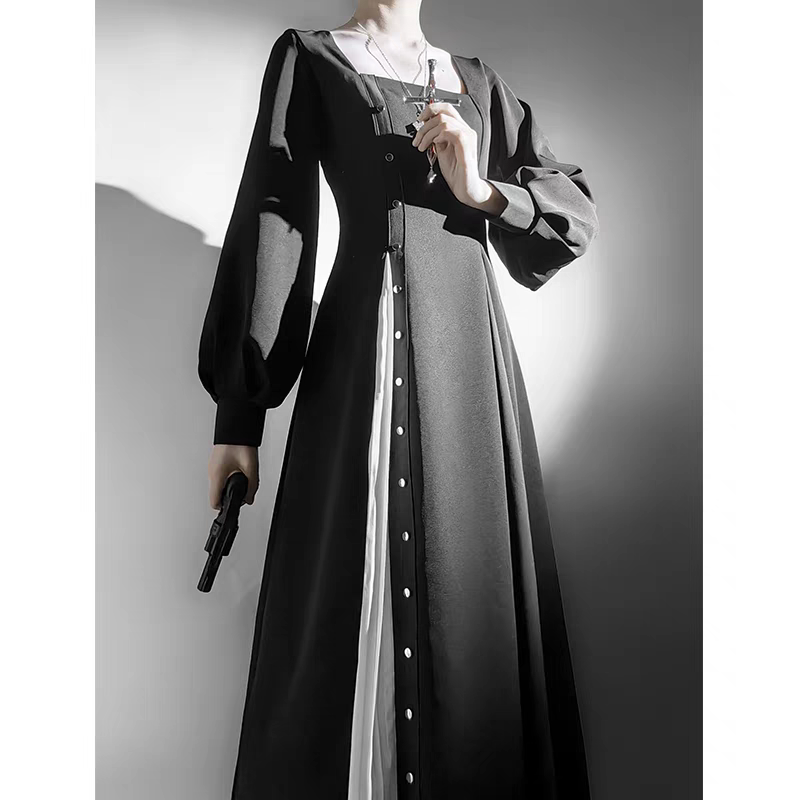 黑白修女暗黑哥特风lolita连衣裙洛丽塔日常万圣节服饰cos服套装
