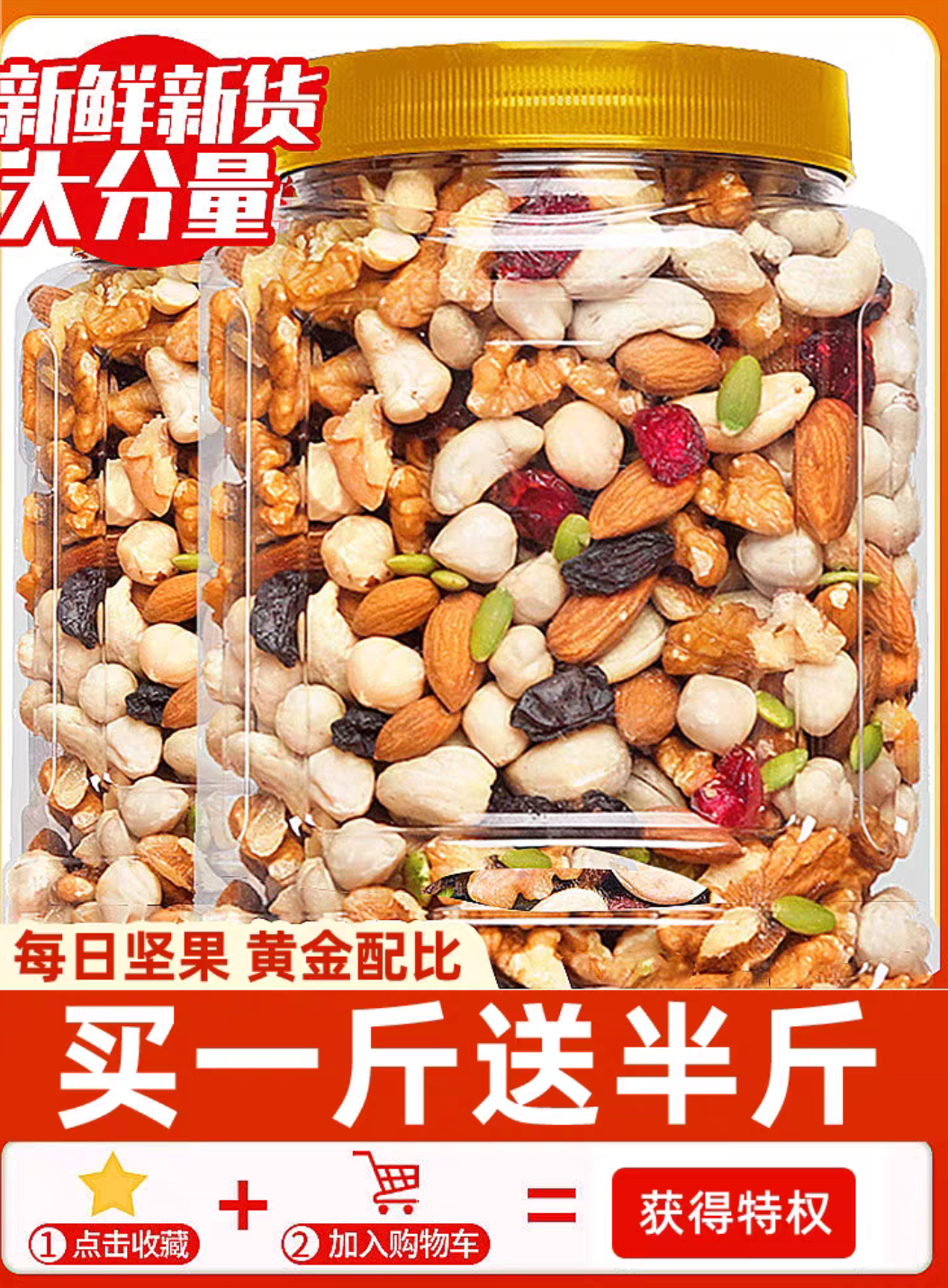 每日坚果混合坚果500g包邮大罐装巴旦木果仁干果坚果组合零食炒货