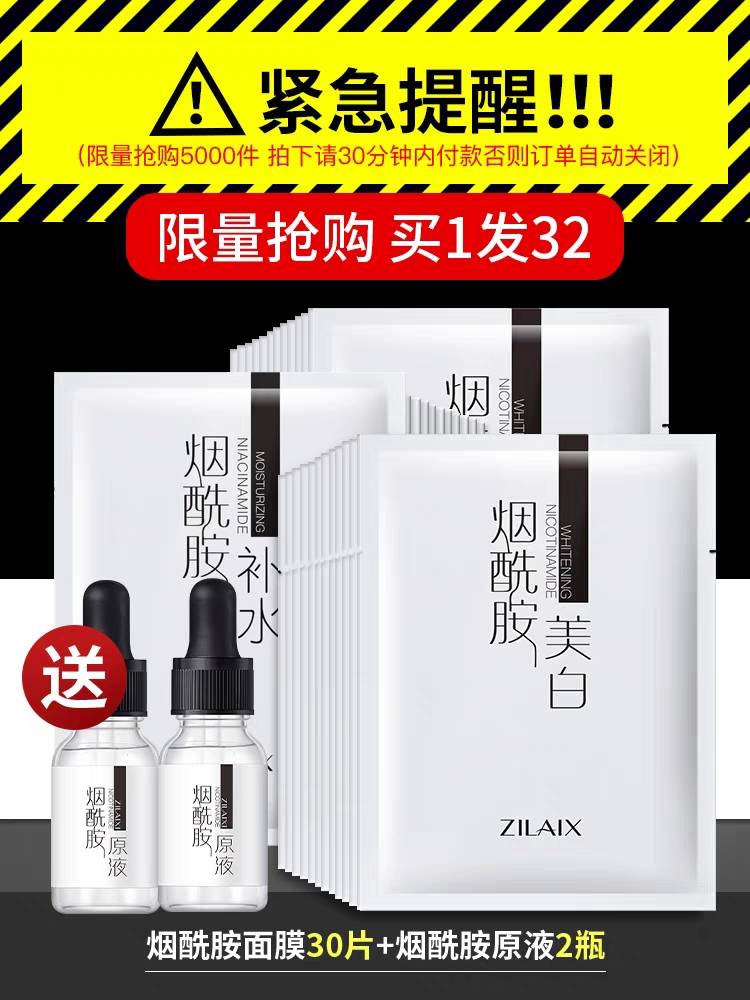 美白烟酰胺面膜正品补水修护淡斑去黄气暗沉男士女专用官方旗舰店