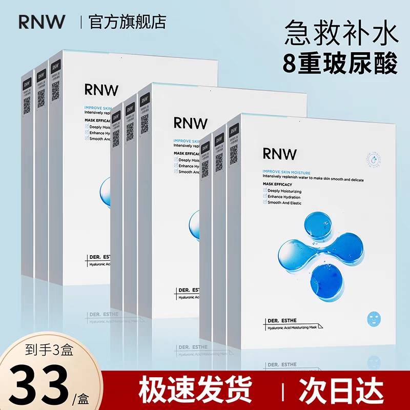 RNW面膜女补水保湿玻尿酸收缩毛孔美淡化痘印3盒白官方旗舰店学生