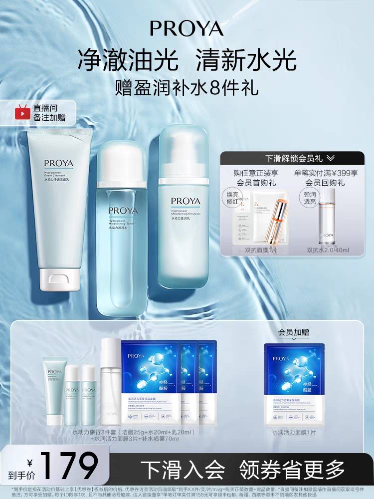 珀莱雅水动力控油水乳套装补水保湿护肤品化妆品官方正品