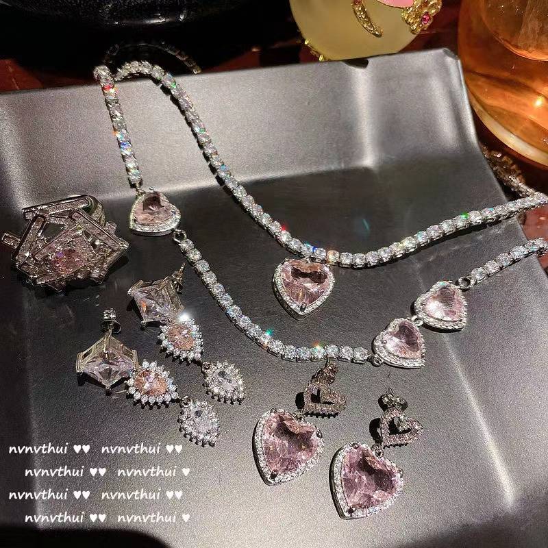 璀璨粉爱心宝石项链 设计师镀18K金葡萄紫心型锆石翅膀猫眼石项链