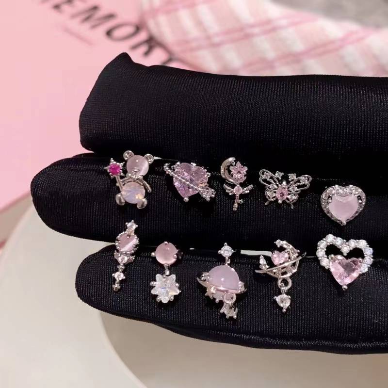 甜酷设计高级感y2k粉钻蝴蝶简约小众爱心耳骨钉医用钛钢耳饰耳环