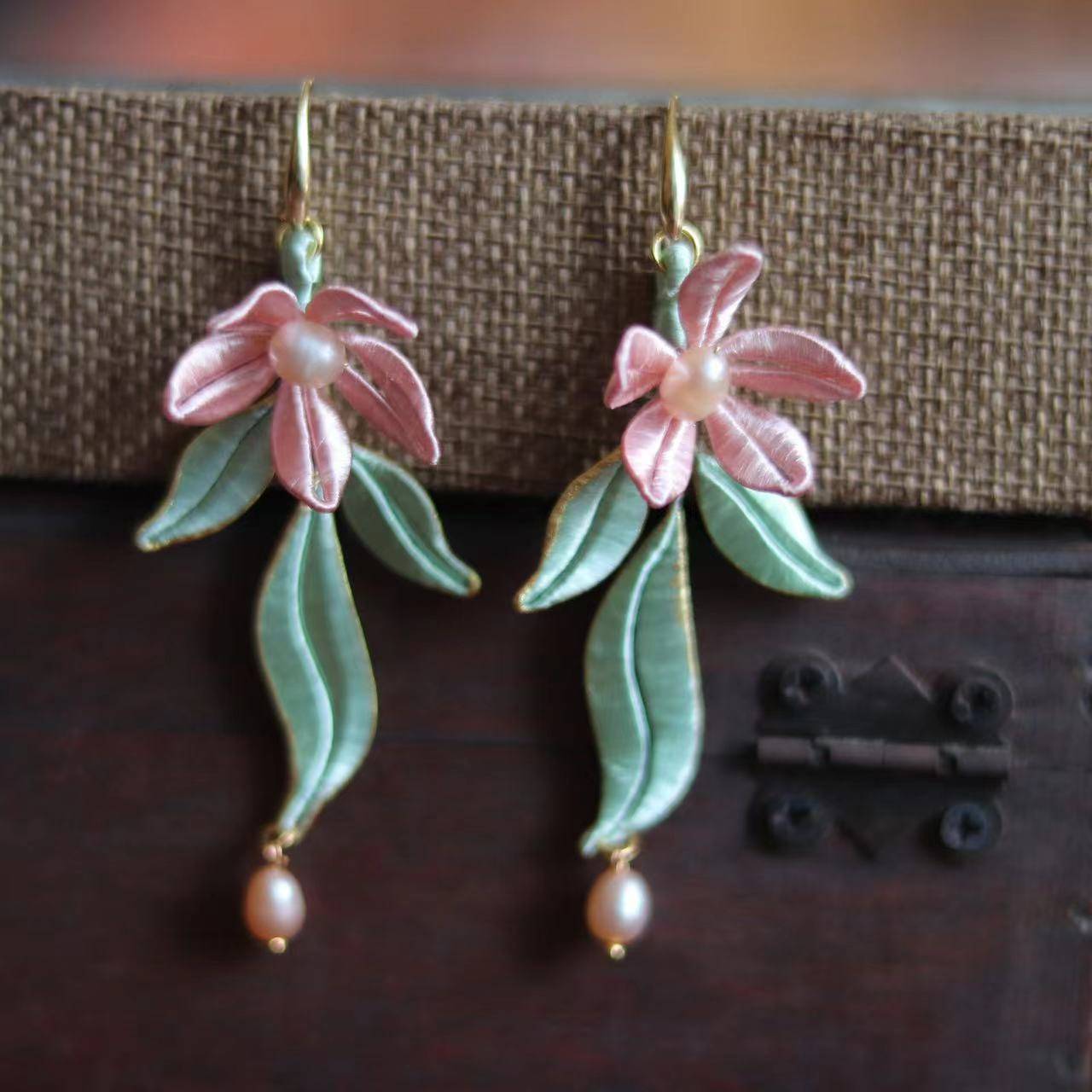 缠花耳饰古风汉服中国风耳挂复古珍珠涂金耳环