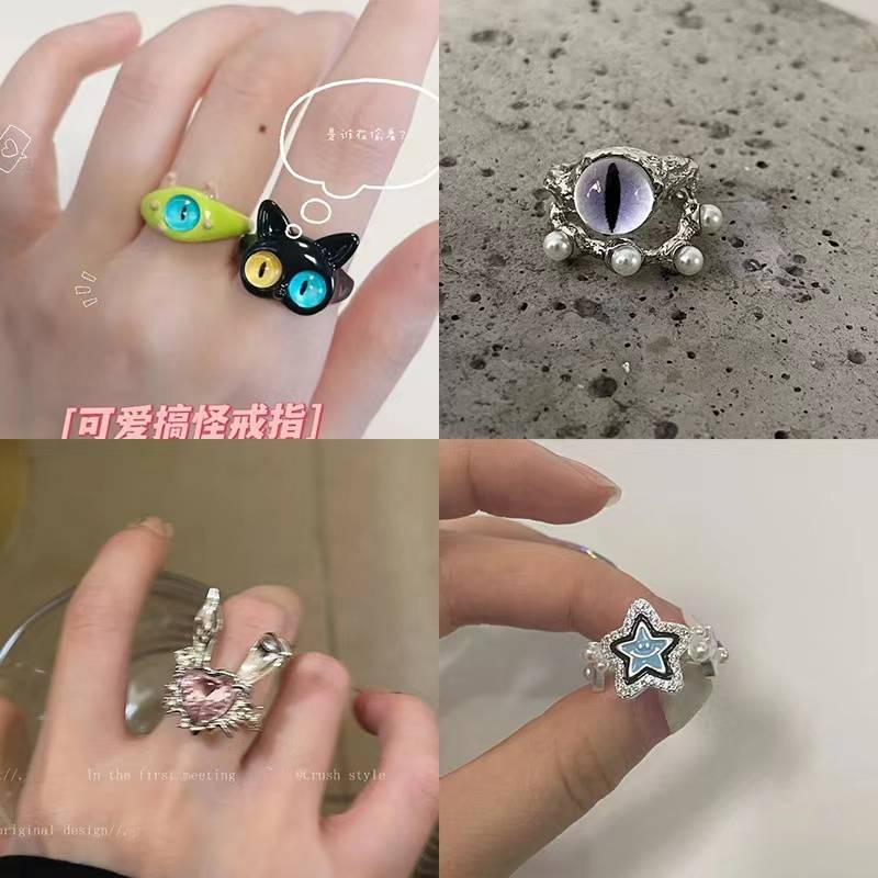 搞怪黑猫小怪兽戒指大眼仔甜酷卡通可爱闺蜜情侣指环礼物饰品戒指