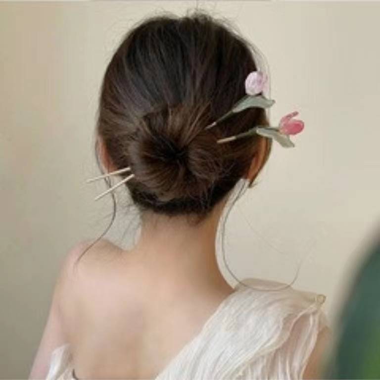 浪漫郁金香发簪女古风高级感丸子头发饰汉服配饰简约现代簪子