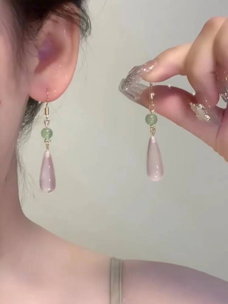 2023年新中式水滴耳环玉髓国风吊坠玉石长款耳钉气质复古风耳饰