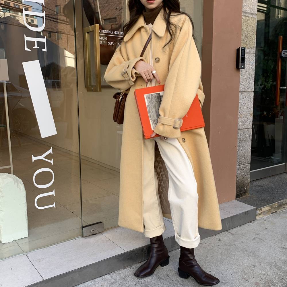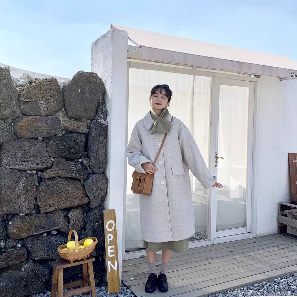 2019秋季新款品牌女装英伦气质纯色长袖西装领双排扣女式风衣外套