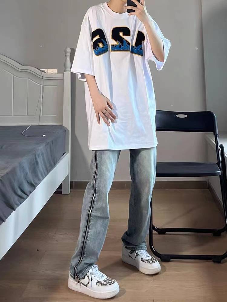 MILK美式火焰数字毛巾绣短袖oversize嘻哈高街T恤男潮情侣装夏季