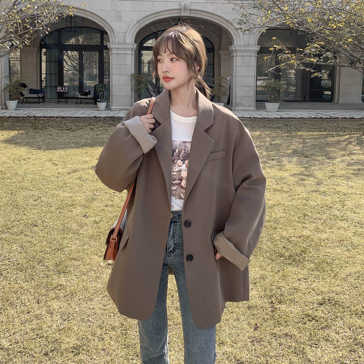 2019秋季新款品牌女装英伦气质纯色长袖西装领双排扣女式风衣外套