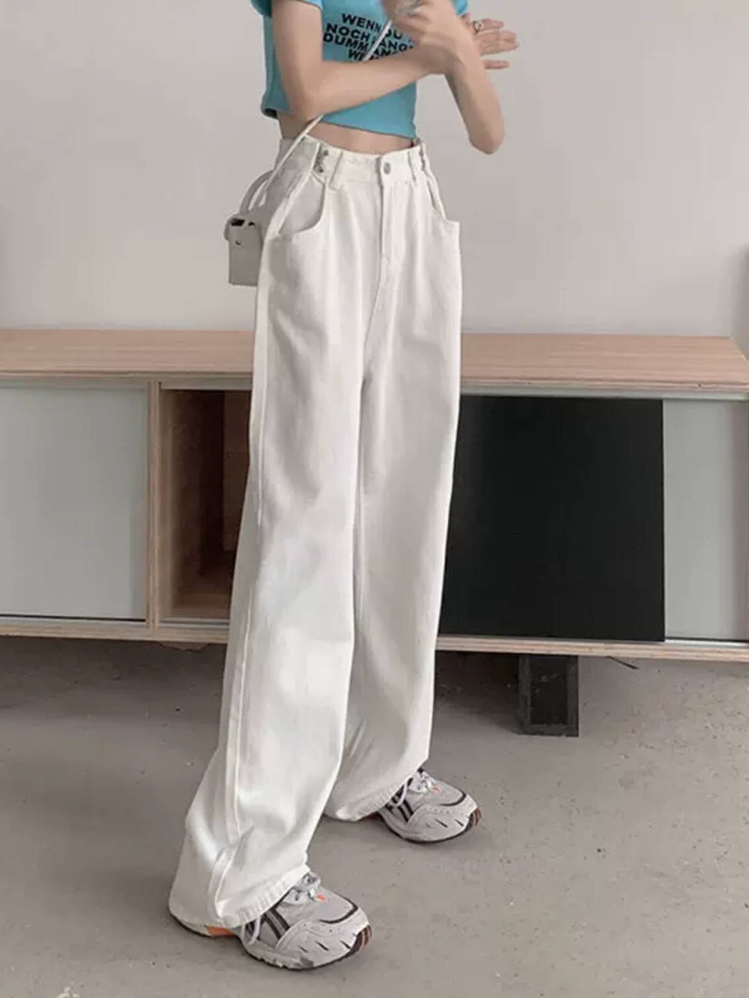 2020春夏新款批发松紧腰高腰牛仔裤女宽松直筒显瘦阔腿长裤