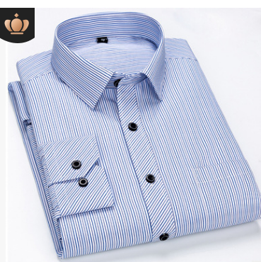 跨境男装新款条纹长袖衬衫男士商务衬衫大码胖子职业正装衬衣