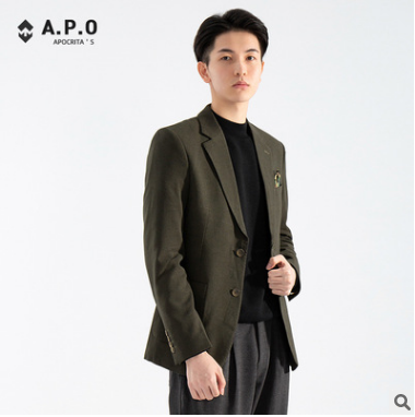 APO男装西装外套男新款韩版潮流修身男士单排扣休闲商务外套上衣