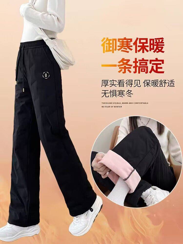 加长直筒羽绒裤女外穿加厚高腰2024冬新款显瘦哈尔滨旅游保暖棉裤