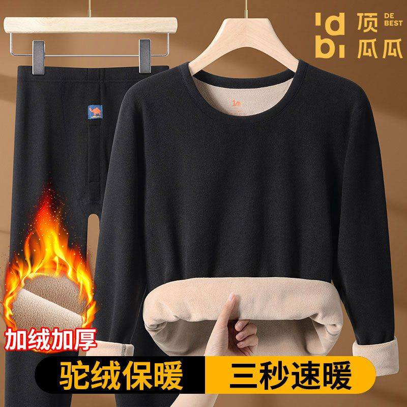 顶瓜瓜保暖内衣男女款加绒加厚驼绒发热秋衣秋裤套装冬季保暖衣