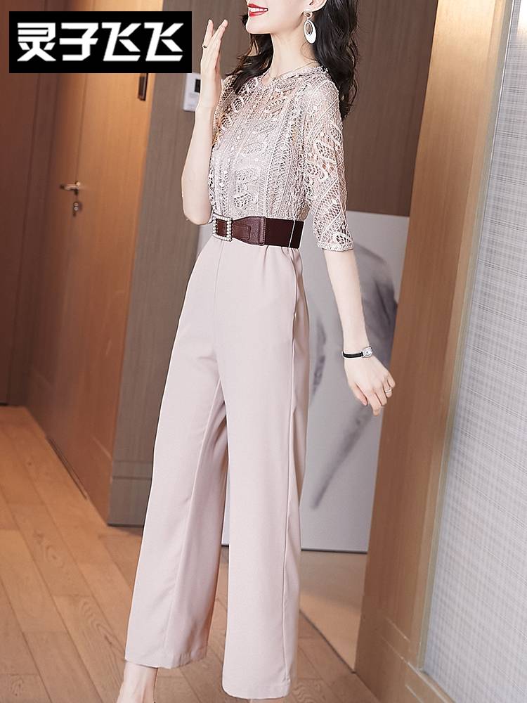 大码女装显瘦蕾丝裙女春季新款微胖mm洋气休闲连衣裙两件套装