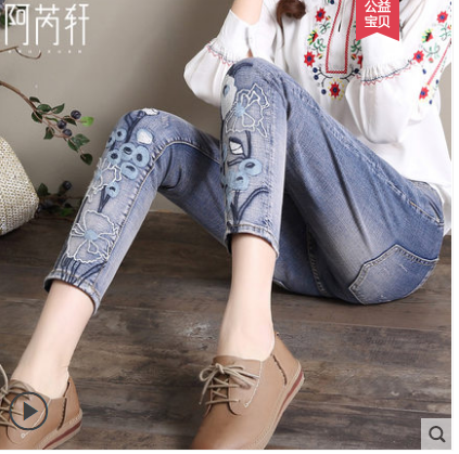 叙旧女装ifation2018年新款春夏皆宜学院风刺绣包邮牛仔裤