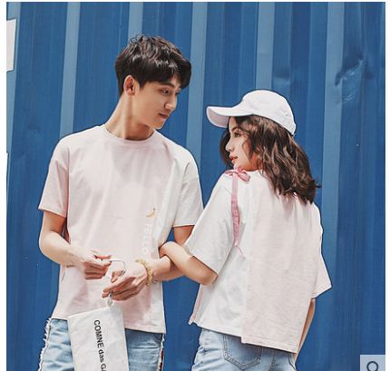 2018年新款叙旧女装ifation韩版中袖小清新bf风包邮纯棉青年外出家居皆宜情侣装