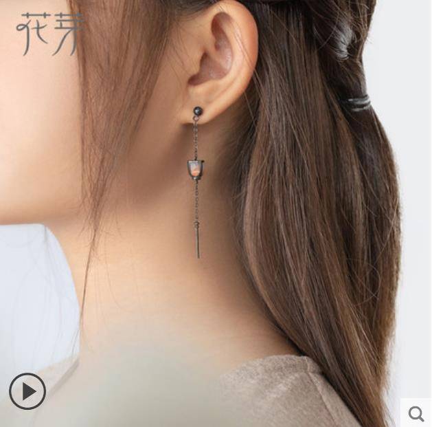 花芽原创国风系列华灯初上耳钉女纯银个性气质学生创意吊坠耳环