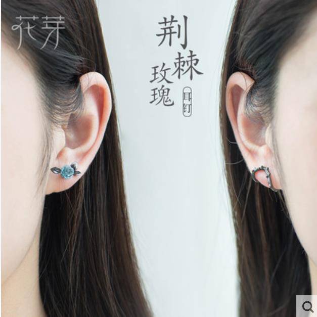 花芽原创设计荆棘玫瑰耳钉女纯银气质韩国个性简约创意耳饰品礼物