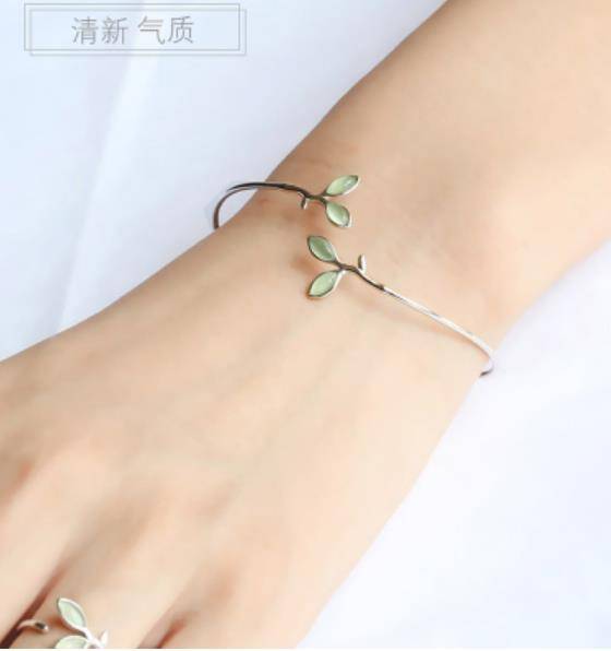 925纯银萌花芽绿叶手镯 森系文艺清新气质树叶手环手饰女生礼物