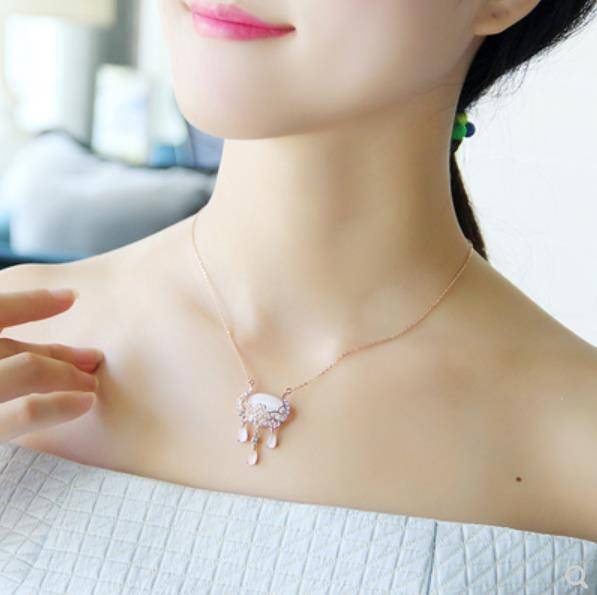 小美优品人工猫眼石平安锁吊坠时尚复古短款锁骨链女士项链首饰品
