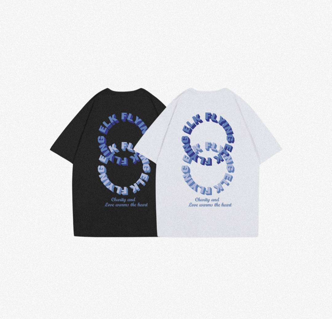 3D立体圆圈字母Logo撞色宽松圆领短袖T桖