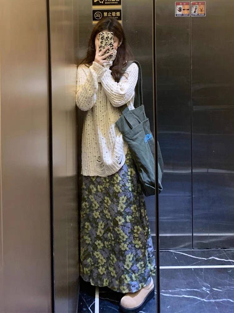 法式桔梗碎花连衣裙女装秋冬浪漫复古穿搭高级感仙气长裙两件套装