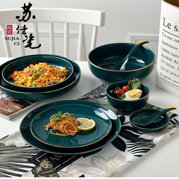 创意祖母绿陶瓷餐具北欧风格盘碟套装