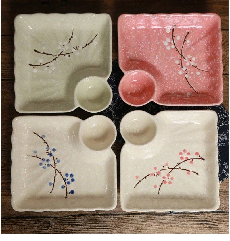 日式梅花手绘创意家用釉下彩陶瓷餐具点心菜盘子