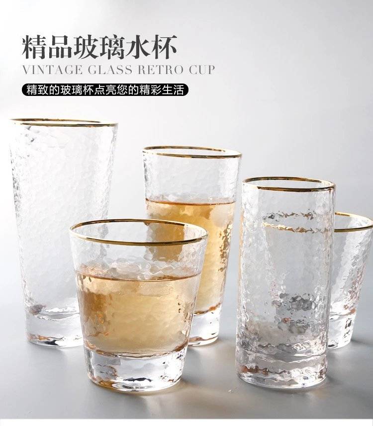 创意金边日式锤目纹玻璃杯冷饮杯果汁杯
