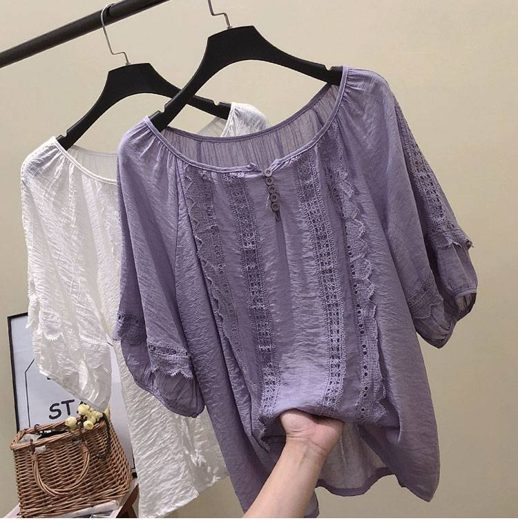 遮肚子雪纺衫洋气短袖女2019新款夏季韩版很仙的宽松百搭蕾丝上衣