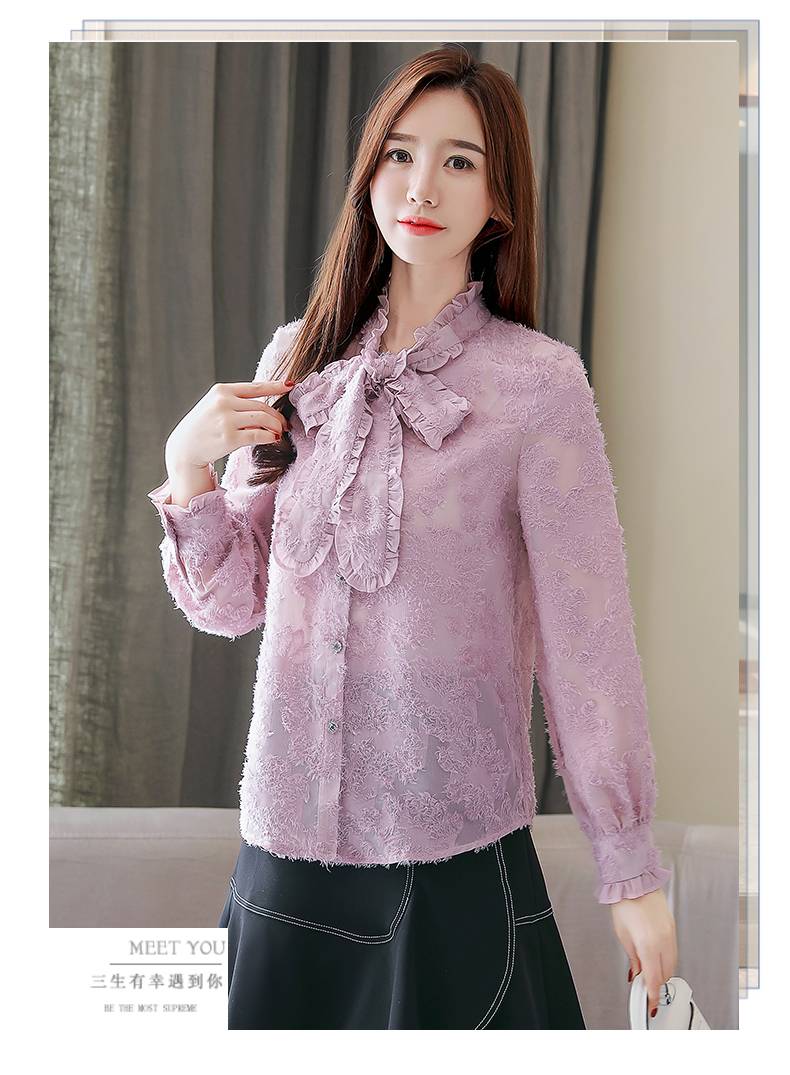 2019春装新款韩版蕾丝雪纺很仙的上衣服装洋气小衫长袖T恤打底衫